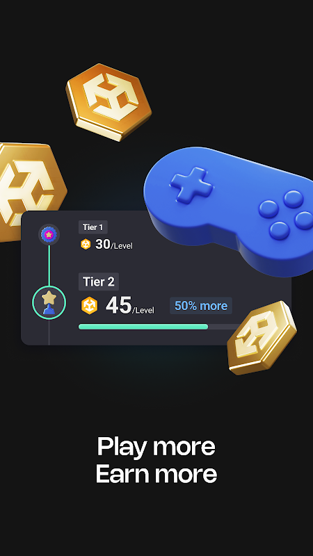 3. Progresa: Gana monedas Unity al alcanzar niveles y logros en los juegos.