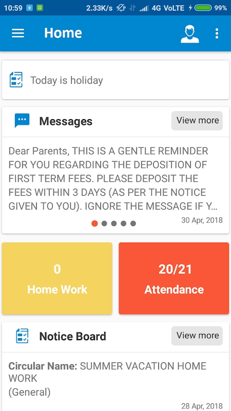 Universal Public School App is an extension to the online profile of student on an android