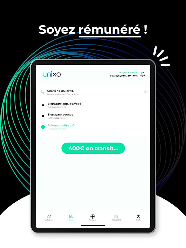 Reciba una compensación financiera mediante transferencia bancaria por cada conexión exitosa desde la pestaña "Perfil".