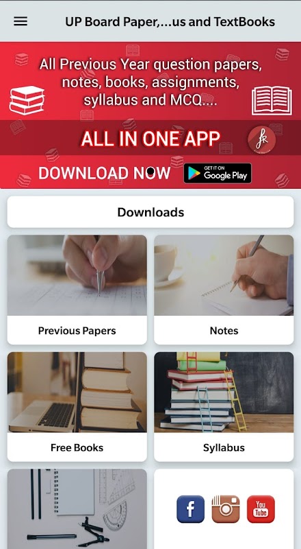 एक मात्र उत्तर प्रदेश बोर्ड aplicación जिसमें आप उत्तर प्रदेश बोर्ड नोट्स, प्रशन पत्र descargar कर सकते है। और उत्तर प्रदेश का सब material ले सकते है।