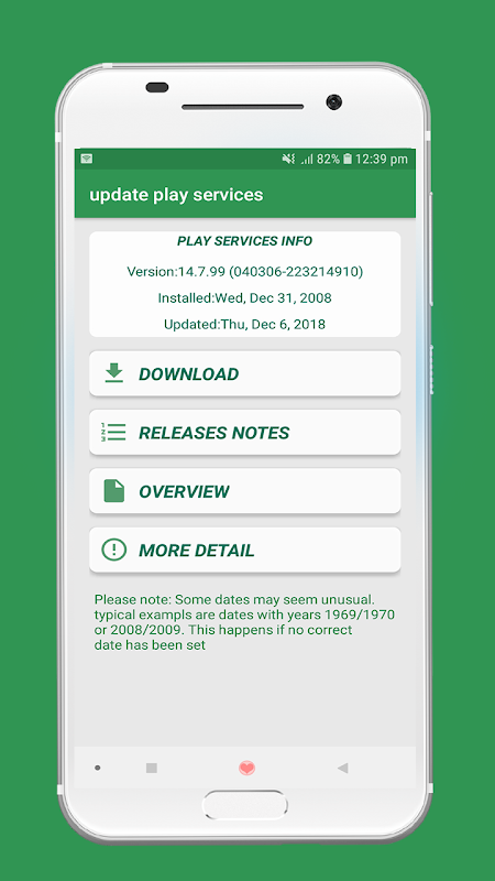 Esta aplicación te ayuda a resolver el problema de Play Store y Play Services y te dice tu versión actual instalada de Google Play Store, Google Play Services