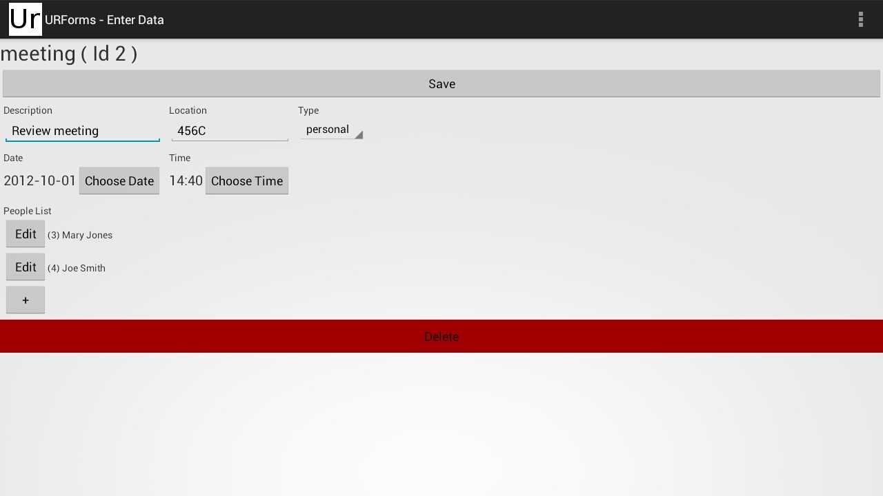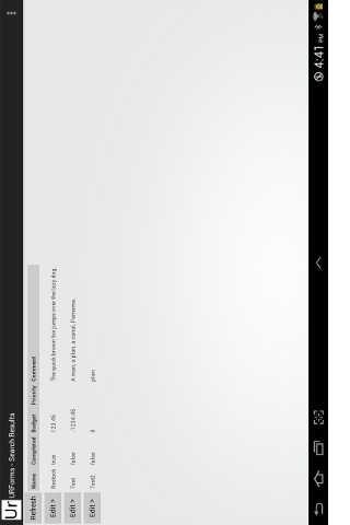 Easily create a custom database and data entry screens with dropdowns, date choosers, and validation. Enter and store your custom data on device. List and search functionality for your fields. Stores data in local SQLite tables. Backup/restore data including image/files and forms to .csv files on SD Card.