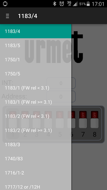 Para programar un dispositivo: seleccione el elemento de la lista de los códigos ", introduzca el número del apartamento por el teclado y copiar en el dispositivo 2VOICE la configuración de interruptores DIP se muestra en el móvil.