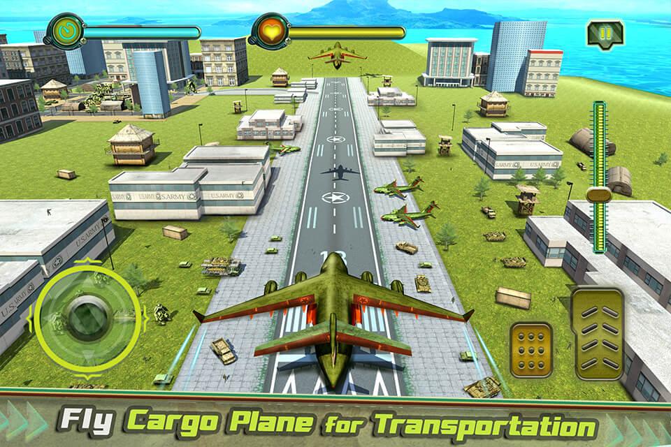 Controles suaves y modelos realistas para aviones y tanques de combate en el simulador de transporte del ejército no tienen comparación con juegos de transporte del ejército y un entorno 3D detallado con una base militar y un centro robot alimentarán tu adicción a la conducción de tanques robot en juegos de tanques del ejército estadounidense.