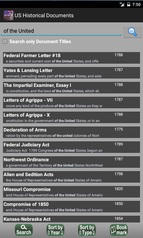 Esta aplicación contiene más de 400 de los documentos, leyes, discursos y casos judiciales más influyentes de la historia de Estados Unidos. Vea los dramáticos elementos que dieron forma a la historia de nuestra nación en este formato extremadamente legible y conveniente.