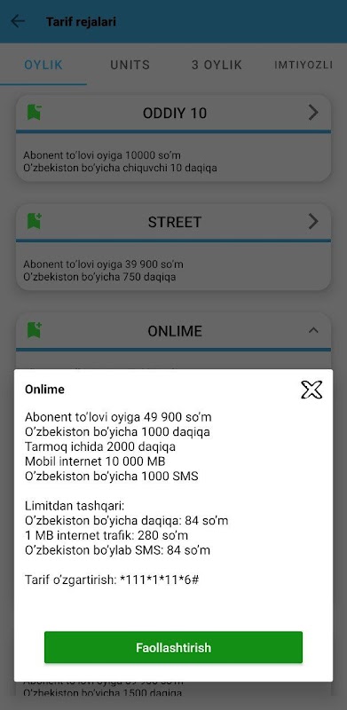 Eng so'nggi tariflardan hamda internet paketlardan xabardor bo'ling.