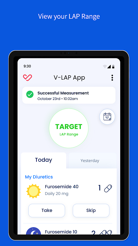Al tomar lecturas diarias y utilizar esta aplicación, podrá controlar su valor de LAP inmediato y revisar las tendencias para obtener una mejor visibilidad del estado de su insuficiencia cardíaca.