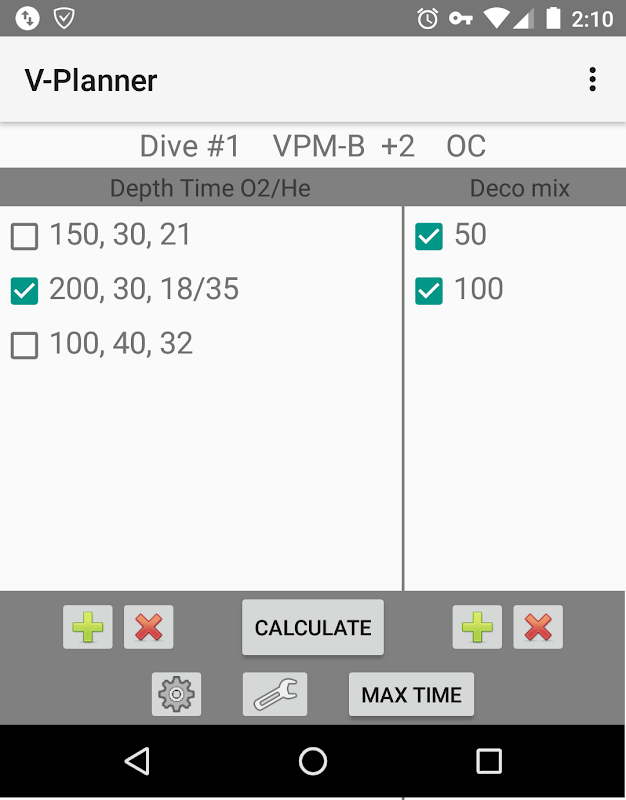 Scuba software de planificación de descompresión de buceo V-Planner. V-Planner se presenta el modelo de descompresión VPM e incluye tanto el modelo E / versiones VPM-B VPM-B. El buceador puede especificar cualquier combinación de nitrox y trimix y tantos gases de descompresión según sea necesario. Métodos de planificación incluyen tanto OC y Rebreather de Circuito Cerrado. Incluye la planificación de los rescates con SCR y OC piernas en un plan de CCR. Incluye detalles de ppO2, END, y consumos de gas.