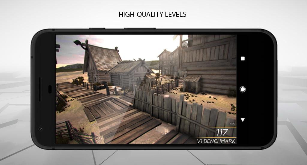 V1 - GPU Benchmark with high quality levels for different smartphone categories (Low-End / High-End).