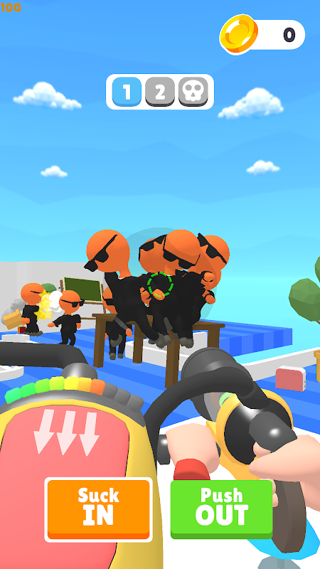 In this game you can control your character with a vacuum gun by moving your finger across the screen.