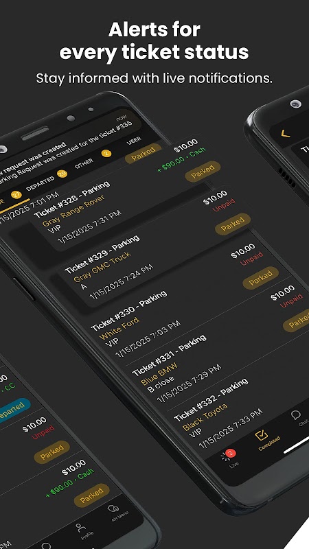 • Comunicarse con los clientes durante y después del servicio de valet a través de notificaciones de texto o llamadas