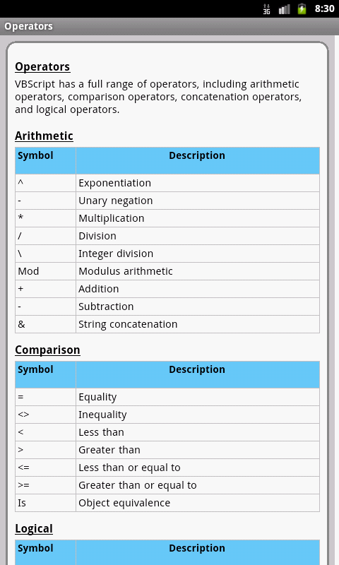 Información de VBScript Pro Quick Guide Free APK