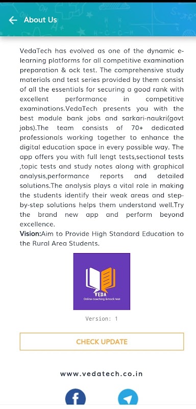 VedaTech has evolved as one of the dynamic e-learning platforms for all competitive examination preparation & ock test. The comprehensive study materials and test series provided by them consist of all the essentials for securing a good rank with excellent performance in competitive examinations.VedaTech presents you with the best module bank jobs and sarkari-naukri(govt jobs).The team consists of 70+ dedicated professionals working together to enhance the digital education space in every possible way. The app offers you with full length tests,sectional tests ,topic tests and study notes along with graphical analysis,performance reports and detailed solutions.The analysis plays a vital role in making the students identify their weak areas and step-by-step solutions helps them understand well.Try the brand new app and perform beyond excellence.