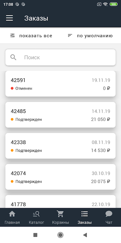 Работа со списком заказов: подтверждение, отмена, просмотр заказов. Отгрузочные документы из 1С по заказу;