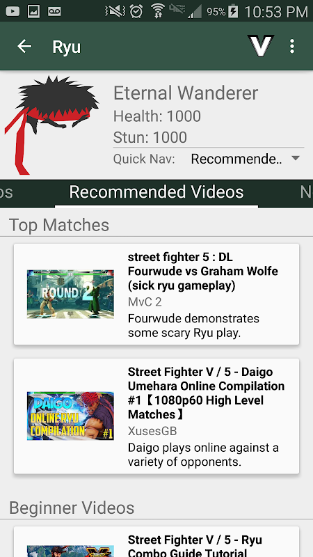 Una aplicación gratuita para ayudar a los jugadores entienden personajes y movimientos en Street Fighter V.