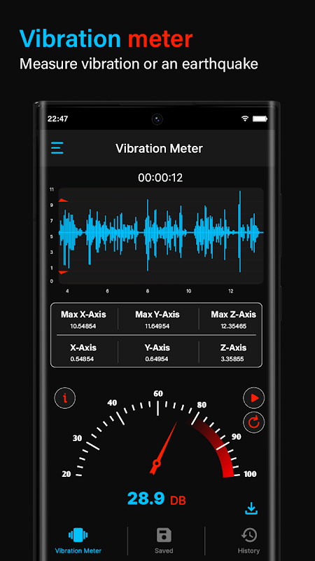 Vibration Meter - Vibrometer es una aplicación avanzada de Android diseñada para medir la frecuencia y analizar las vibraciones en máquinas y estructuras. Verifique la frecuencia o realice análisis de vibraciones con una amplia gama de características y funcionalidades, esta aplicación es ideal para profesionales en diversas industrias, incluida la ingeniería mecánica, automotriz y aeroespacial.