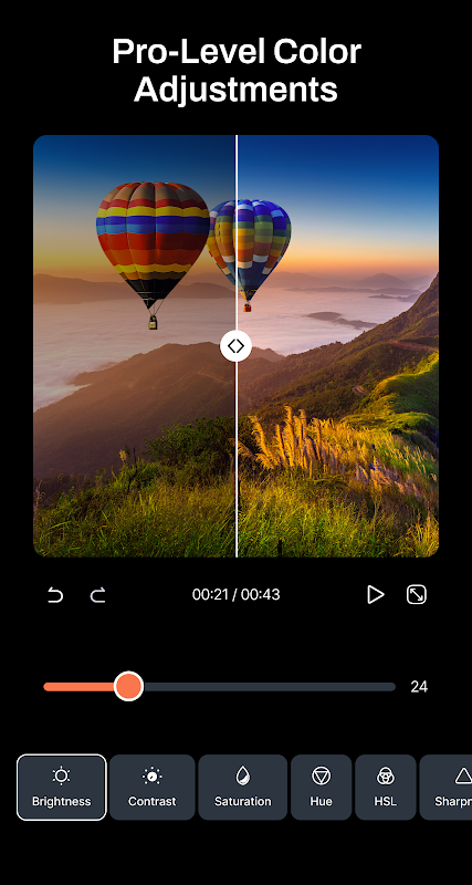 Edita tus videos como un profesional con este editor de video premium. Corta, recorta, divide, invierte, ajusta colores, agrega música, texto, stickers y efectos — todo en una sola aplicación. Ideal para vloggers, YouTubers y creadores que buscan resultados profesionales.