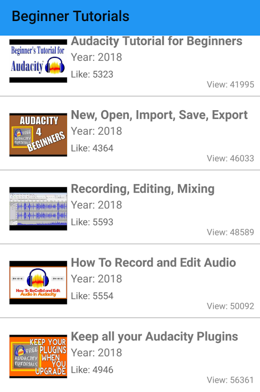 Audacity is an open source free software used by millions of sound professionals all over the word to create industry standard audio files. This app is a collection of video tutorials that includes Beginner Tutorials, Intermediate Tutorials, Advanced Tutorials of audacity which is especially useful for learners. It also includes complete 38 Tutorial Series and many useful tips for Audacity.