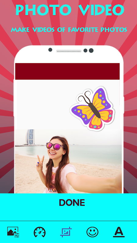video or slideshow with photos,pictures,music,stickers,sound effects are easy and funny.