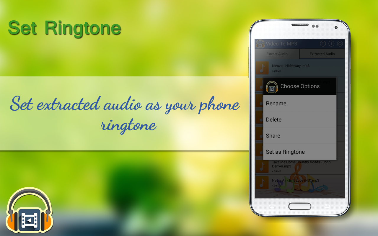 Crear su propia música! El más avanzado y fácil de usar convertidor de vídeo a MP3 de audio . Es compatible con un gran número de tipos de archivos de vídeo como MP4, 3GP, WMV, etc Usted puede también extraer el audio de una parte de un vídeo y utilizarlo para establecer como tono de llamada.