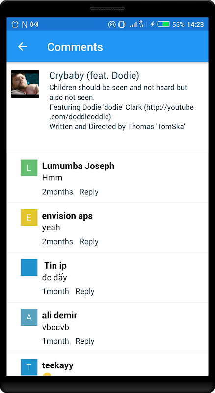 Users can react or give feedback through comments/replies and likes. App comes with support for emojis in comments.