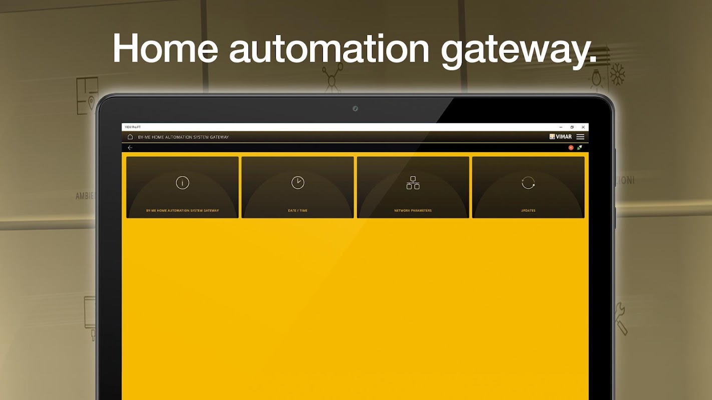 La aplicación VIEW Pro permite al profesional que realiza la instalación configurar, a través de la tablet, el sistema integrado VIEW IoT Smart Systems y programar todo el subsistema By-me Plus, en local o en remoto, gracias a unos sencillos pasos guiados por una interfaz muy intuitiva. La aplicación, instalada en el smartphone, permite ver las instalaciones y realizar algunas operaciones básicas en los gateways (barrido, vinculación, actualización del firmware y copia de seguridad).