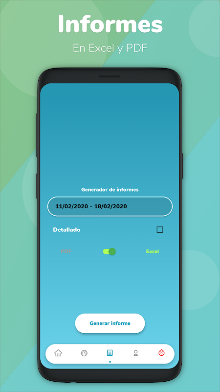 El encargado de gestionar los informes de horas registradas podrá generarlos a final de mes o cuando le convenga desde su PC. Podrá tener un informe de control horario simple o detallado en PDF y Excel.