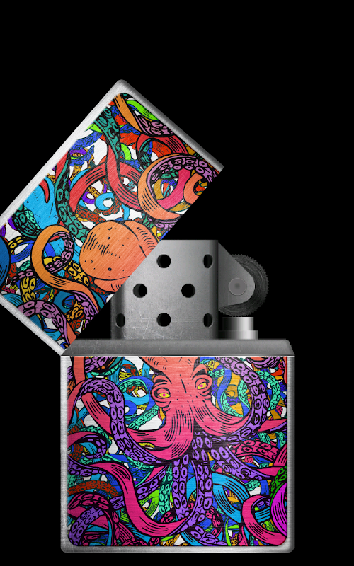 Abre la tapa del mechero usando tu dedo o simplemente agita tu teléfono. La tapa superior se abrirá. Después, fricciona la piedra de encendido como si lo estuvieras haciendo con un mechero real. La chispa aparecerá debajo de la piedra y encenderá la mecha. Si no consigues hacer fuego la primera vez, no te preocupes, inténtalo otra vez. Al final el mechero se encenderá. La llama reaccionará con el movimiento de tu teléfono. Si quieres apagar el fuego, cierra la tapa superior con tu dedo o agita el teléfono. También puedes soplar hacia el fuego para apagar la llama. (Para usar la característica que apaga la llama soplando, tienes que activarla en los ajustes).