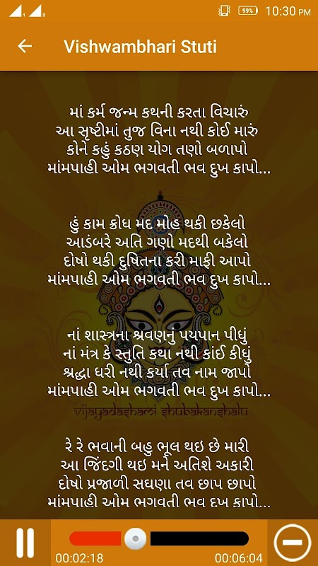 Start a day with Maa Ambe’s blessings with Vishwambhari Stuti. Don’t forget to install, rate and comment this application.