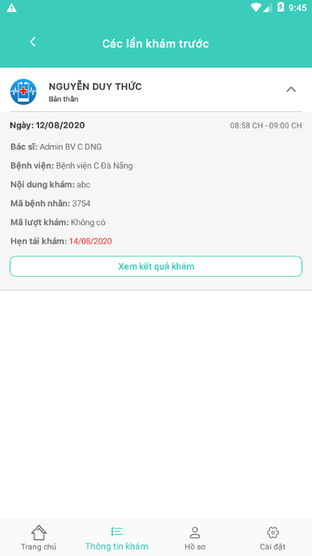 - Cho phép liên kết lại hồ sơ sức khoẻ.
