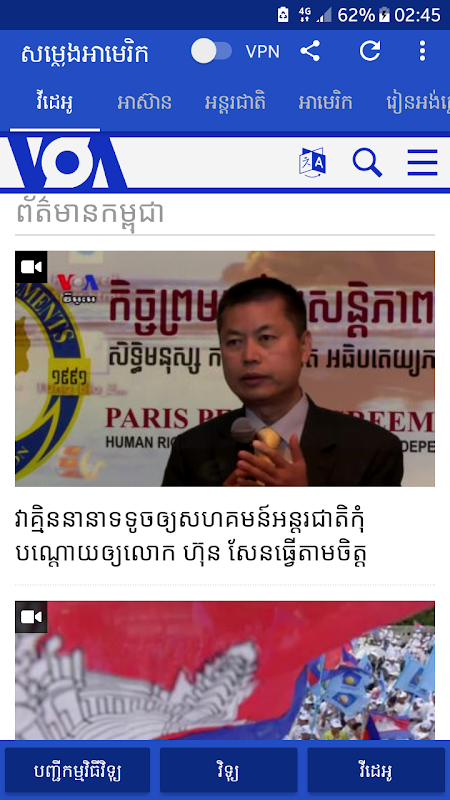 ព័ត៌មាន, វីឌីអូរនិងវីដេអូផ្សាយបន្តផ្ទាល់របស់កម្ពុជានិងពិភពលោកជាភាសាខ្មែរដោយទីភ្នាក់ងារព័ត៌មានវីអូអេ