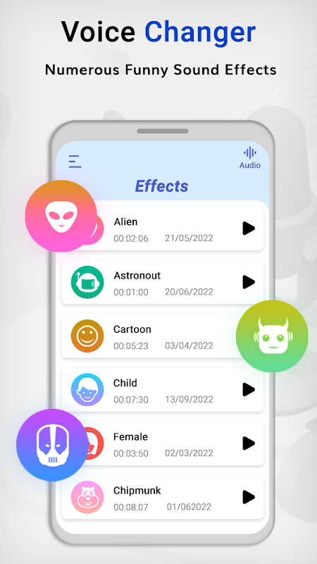 Voice Changer con efectos es muy fácil de usar y puede crear efectos de sonido increíbles y geniales. Una aplicación inteligente y divertida de efectos de cambio de voz para editor de voz, cambiador de voz de superhéroe y cambiador de voz de messenger.