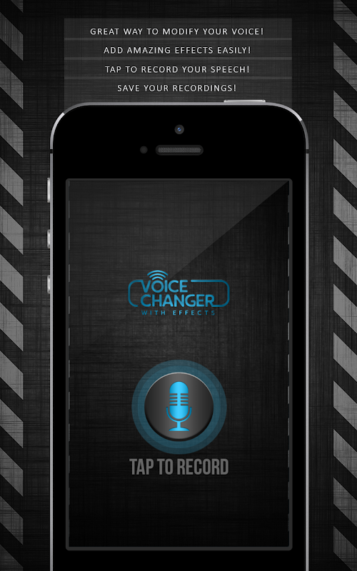 Instalar una grabadora de audio y editor divertido que será su nuevo cambiador de voz para el canto y chistes! Es una de las pocas aplicaciones de efectos de sonido que tienen tantos efectos sorprendentes! Se obtiene una grabadora de voz con el efecto de eco, cambiador de voz de niño, cambiador de voz de robot, y mucho más, todo en una sola aplicación! Cambiador De Voz Con Efectos es una grabadora de voz y editor de música que será el grabador de voz perfecta para crear nuevos tonos y alarmas! Instalar esta grabadora de voz y cambiador y usted tendrá la mejor grabadora de voz aplicación gratis!