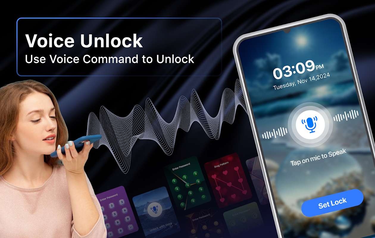 Desbloqueo por voz: configure una contraseña de voz única y desbloquee su teléfono sin esfuerzo.
