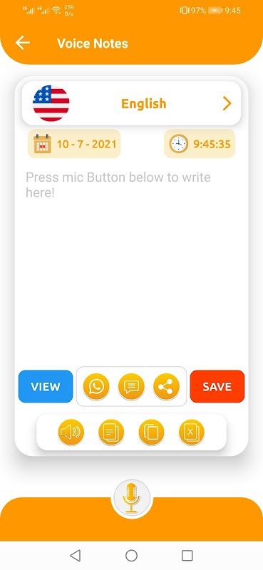 Voice Notes in all languages allows you to quickly and easily write notes. Voice notes in all languages allow you to manage time. Now create notes quickly with voice in all languages. Just speak words with voice notes it detect sound and type text on the notepad with speech to text converter. This app is helpful during driving, traveling, communicating, and social networking to write any information on the mobile with voice to text.