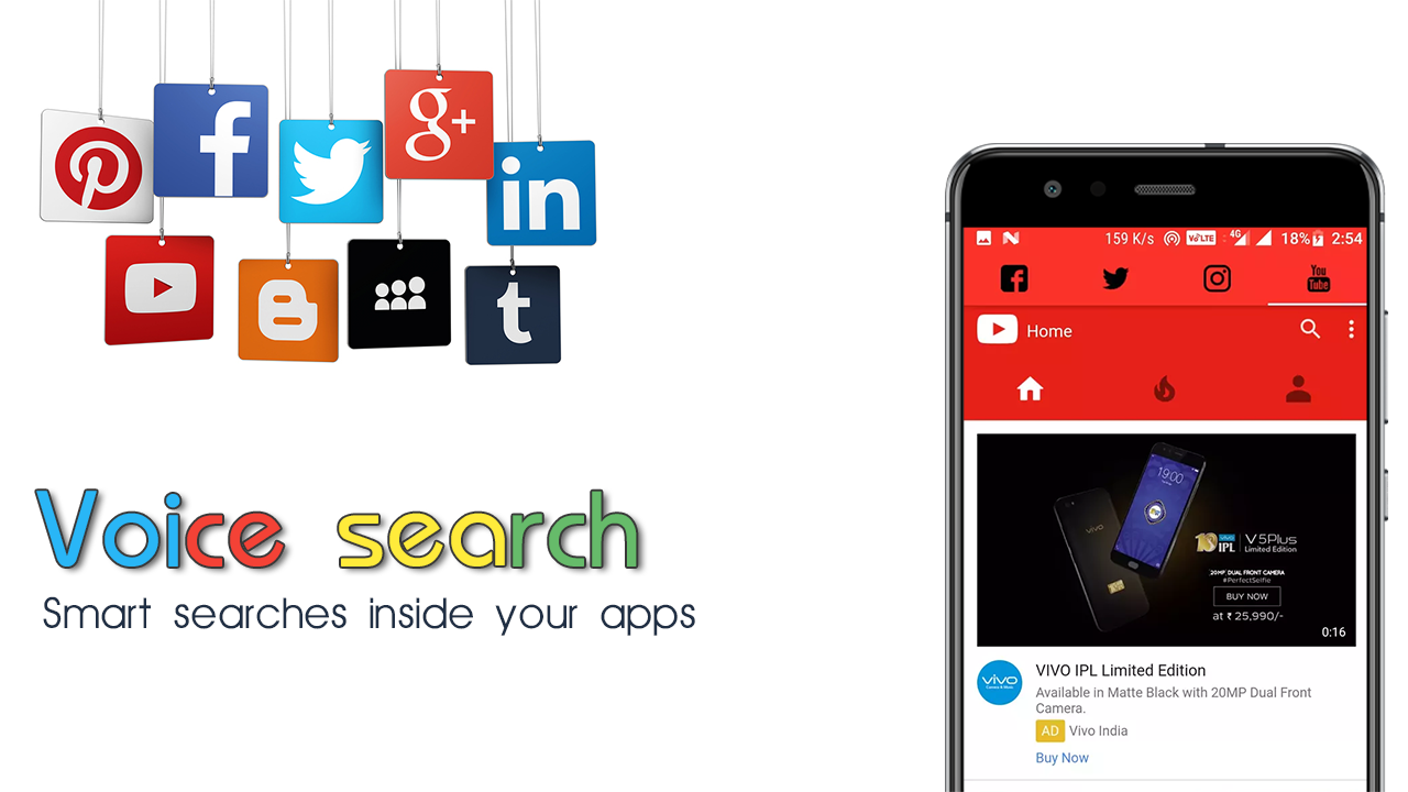 Hey Music Lovers; Also have Music voice search through which you can search any music with you voice commands and the result will fast and accurate voice search. Voice search all app features will allow you to search apps with your voice