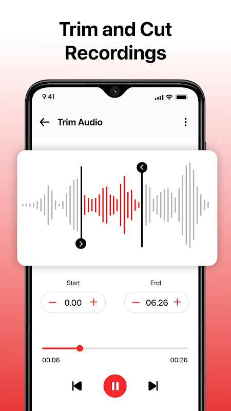 La Grabadora de Voz tiene una interfaz clara y sencilla, para que cualquiera pueda usarla sin complicaciones. Todas tus grabaciones se mantienen privadas en tu dispositivo a menos que decidas compartirlas.