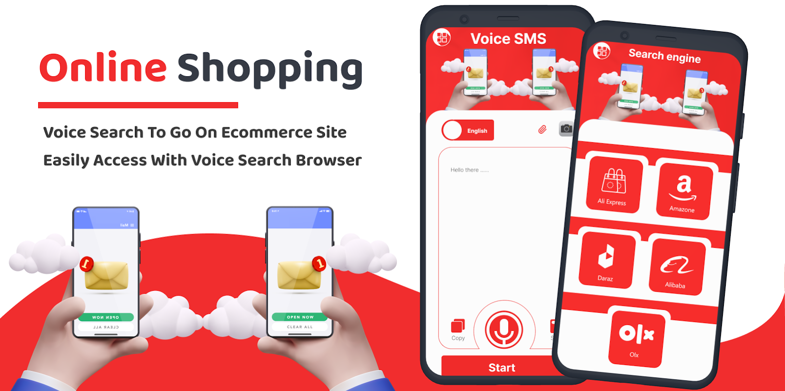 Hable y vea el mismo texto escrito para SMS y búsqueda web