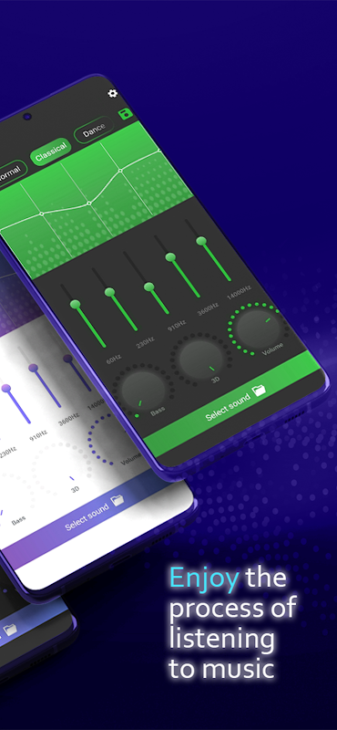 How it works? Choose favorite song or soundtrack from the gallery and apply the best equalizer to add different sounds to it, which will change it and increase the volume of the song itself. For example, in custom you can choose such sounds as:classical, dance, flat, folk, hip hop, heavy metal, jazz, pop, rock.💃🏼 Apart from that, you may also adjust the bass and 3D power. Тhe sounds list isn’t short, so we are sure that everyone are able to find something for themselves in the equalizer phone settings.🤔
