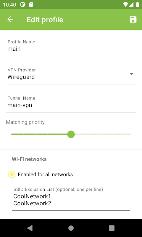 Listas de inclusión y exclusión de nombres de operadores móviles/SSID WiFi