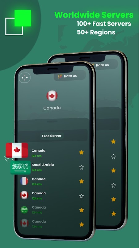 Una de las mejores cosas de Master VPN son sus servidores VPN gratuitos. Todos los usuarios de Android pueden disfrutar de estos servidores en cualquier momento y lugar, sin límite de tiempo. Simplemente haga clic en el botón "Conectar" y se conectará instantáneamente al servidor proxy más rápido y con la conexión más segura posible.