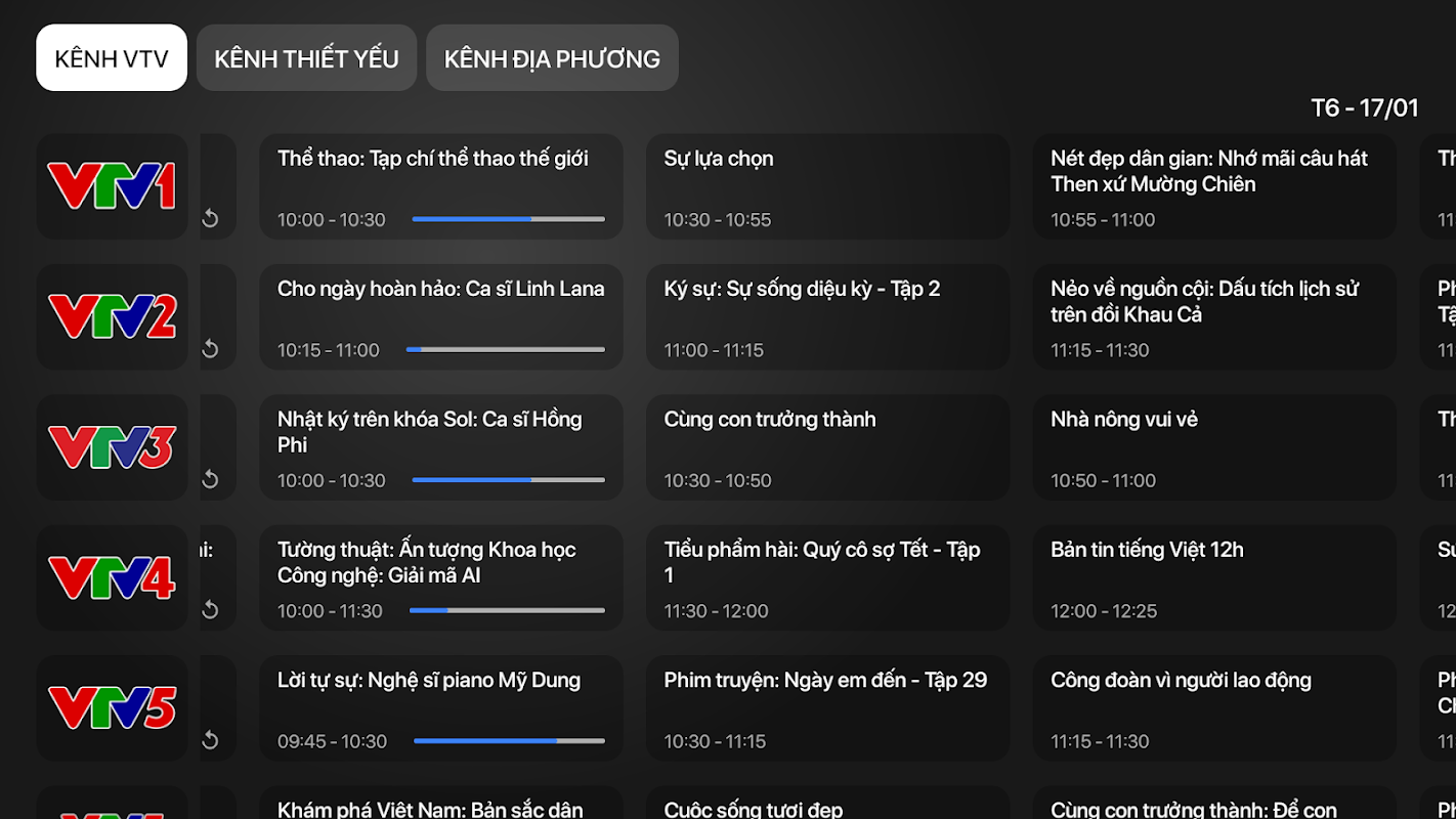 Aplicaciones de vista oficial en línea de TV Televisión de Vietnam.