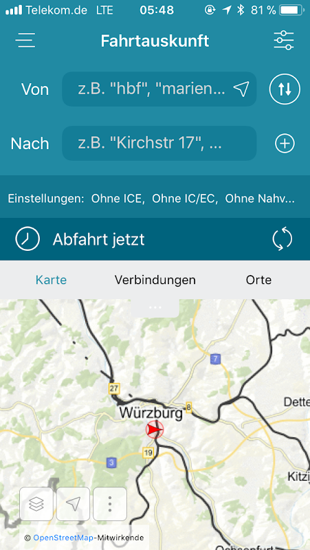 un compañero útil en el transporte público en el conjunto de Franconia. Además de las conexiones de puerta a puerta, la información de horario móvil de tranvía, autobús y tren sobre las salidas y llegadas de la ubicación del usuario, la parada o de la información del mapa. Para muchos el transporte aquí son datos en tiempo real, tales como retrasos y cancelaciones están disponibles. Además, las posiciones de transporte en el mapa pueden ser seguidos. Favoritos permiten la fácil recuperación de la información del recorrido para las conexiones de uso frecuente. Toda la cadena de viaje se puede remontar en un mapa o fotografía aérea, incluyendo los senderos. las principales redes de líneas en las "redes de área" del compuesto también es recuperable.