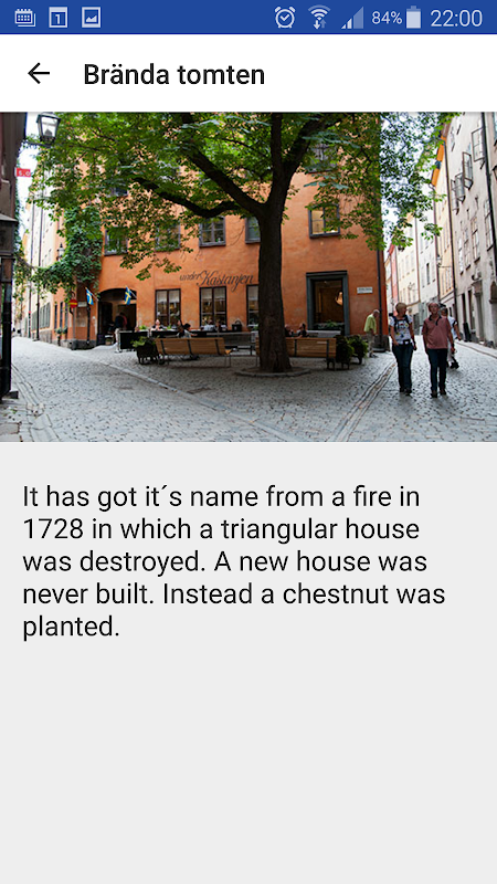 When you pass interesting places a photo and a text will show up to let you know more about the amazing city of Stockholm.