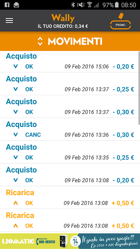 VELOCE - seleziona il prodotto da acquistare, poggia lo smartphone sull'icona di wally presente sul distributore e... buona pausa