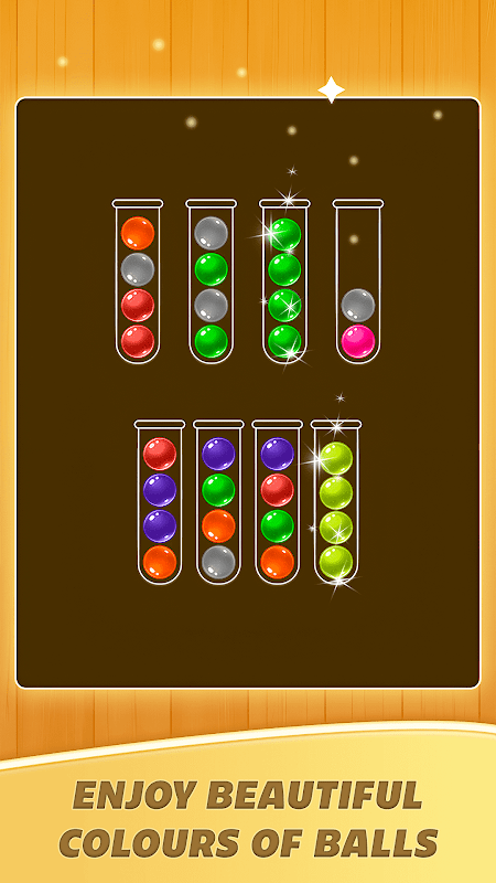 - La regla es que solo puedes mover una bola sobre otra si ambas son del mismo color y el tubo al que quieres moverla tiene suficiente espacio. - Intenta no atascarte: siempre puedes usar pistas o reiniciar el nivel en cualquier momento.