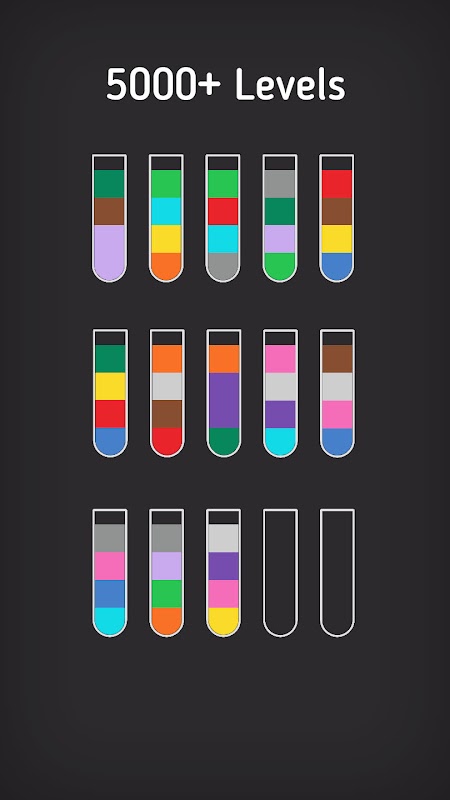 ❤️ Rompecabezas de clasificación de colores por clasificación de agua: un juego de clasificación de colores, es un juego divertido y relajante para matar el tiempo. Simplemente toque los tubos y vierta agua del mismo color en una botella. Es fácil de aprender con un sinfín de desafíos.