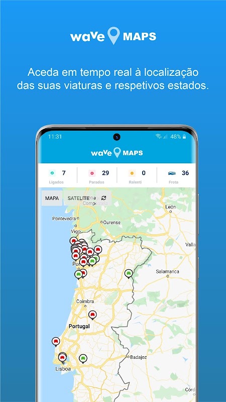 La aplicación Wave Maps permite a los suscriptores de este software acceder a las funciones de seguimiento de flotas a través de dispositivos móviles Android Tablet o Smartphone