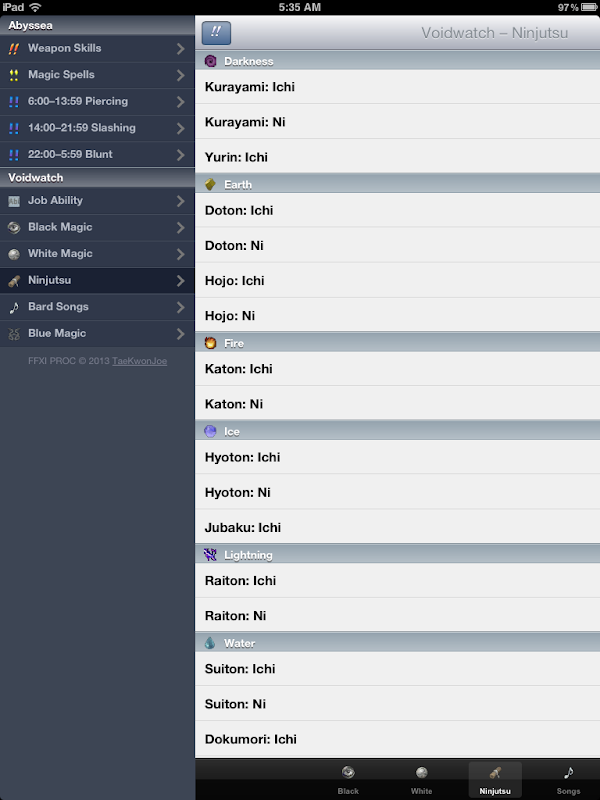 Final Fantasy XI weakness trigger (or PROC) guide for Abyssea & Voidwatch notorious monsters and Dynamis. Easily reference weaponskills, magic spells, ninjutsu, bard songs, and job abilities to trigger red, yellow, blue, and white PROCs.