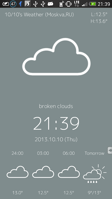 また、ロック画面には今日の天気と3時間後、6時間後、9時間後、明日の天気を表示することが可能です。